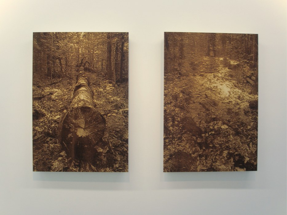 Zafeiropoulos’ exhibition at Elika Gallery is composed of laser carved Images on poplar wood, digital UV printing, videos and a floor-standing sculpture.